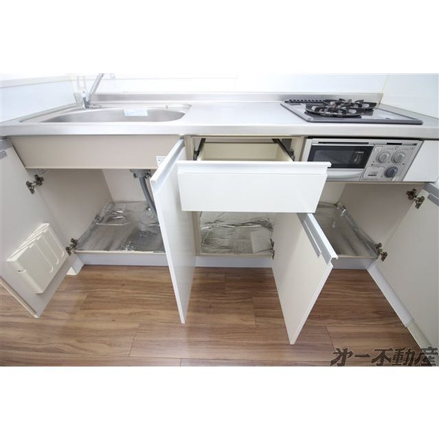 オートロック・都市ガス・上水道・下水道・電気・シャワー・エアコン・照明器具・モニタ付インターホン・室内洗濯機置場・ウォークインクローゼット・システムキッチン・洗髪洗面化粧台・バルコニー・ガスコンロ付・B・T別室・トイレ・洗面所独立・シューズボックス・カウンタキッチン