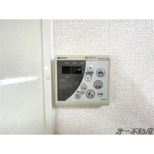 BS端子・オートロック・電気・都市ガス・上水道・下水道・光ファイバー・シャワー・エアコン・照明器具・モニタ付インターホン・室内洗濯機置場・フローリング・ウォークインクローゼット・洗髪洗面化粧台・バルコニー・追焚機能・B・T別室・トイレ・洗面所独立・火災警報器(報知機)・室内物干し・温水洗浄便座・シューズボックス