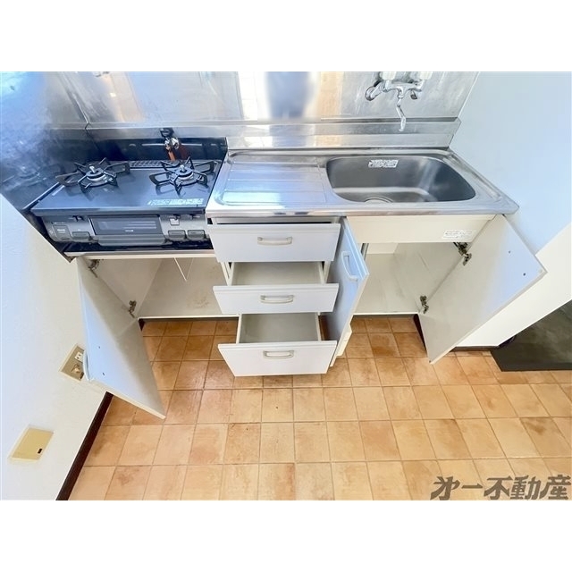 プロパンガス・上水道・下水道・電気・給湯・シャワー・室内洗濯機置場・専用庭・ガスコンロ付・B・T別室・トイレ・洗面台