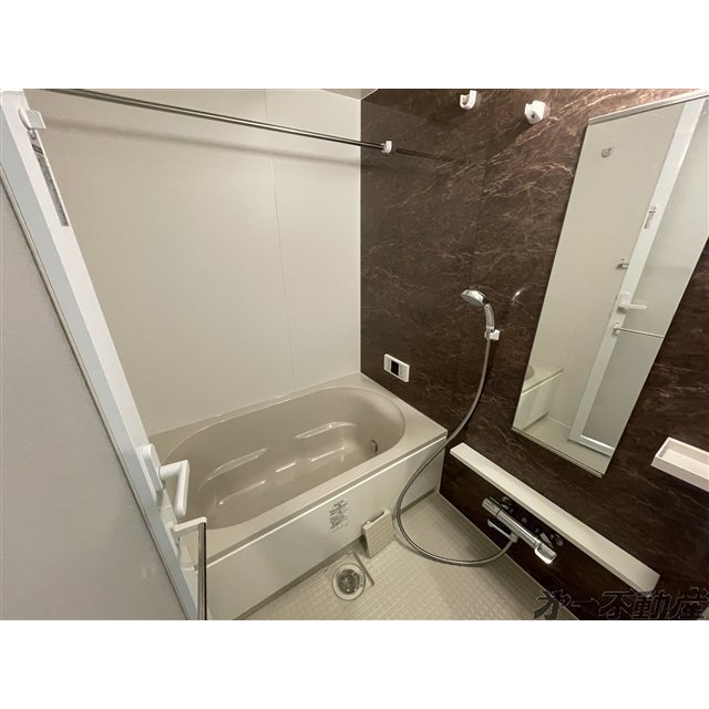 オートロック・プロパンガス・上水道・電気・給湯・シャワー・エアコン・モニタ付インターホン・室内洗濯機置場・フローリング・ウォークインクローゼット・システムキッチン・洗髪洗面化粧台・バルコニー・追焚機能・ガスコンロ付・B・T別室・トイレ・洗面所独立・3口以上コンロ・浴室乾燥機・火災警報器(報知機)・温水洗浄便座・シューズボックス・カウンタキッチン