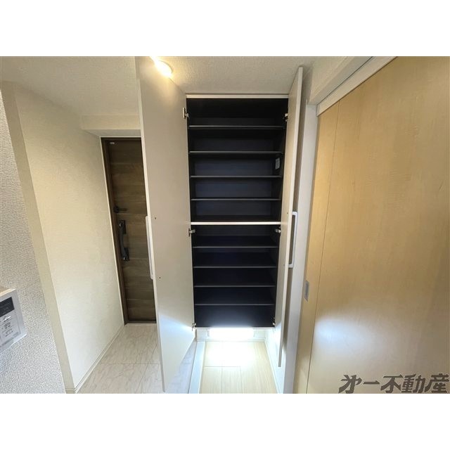 BS端子・オートロック・エレベータ・宅配BOX・電気・都市ガス・防犯カメラ・シャワー・エアコン・照明器具・モニタ付インターホン・室内洗濯機置場・フローリング・システムキッチン・洗髪洗面化粧台・バルコニー・追焚機能・ガスコンロ付・B・T別室・トイレ・洗面所独立・浴室乾燥機・室内物干し・温水洗浄便座・シューズボックス