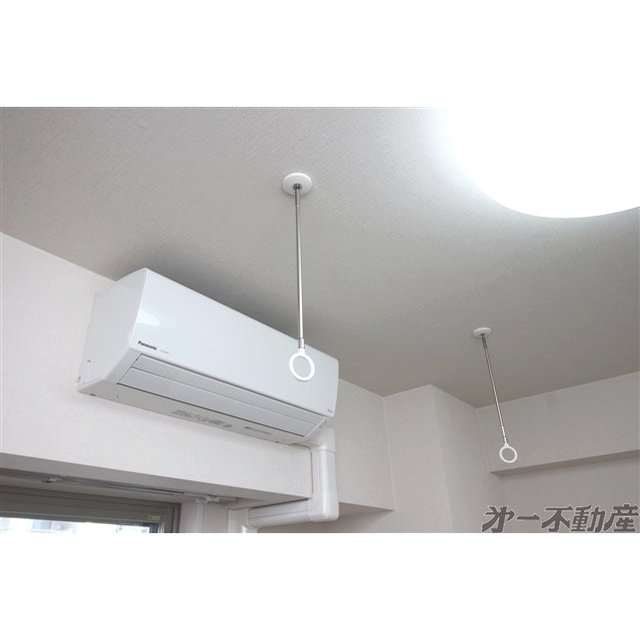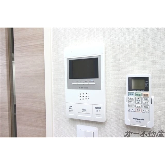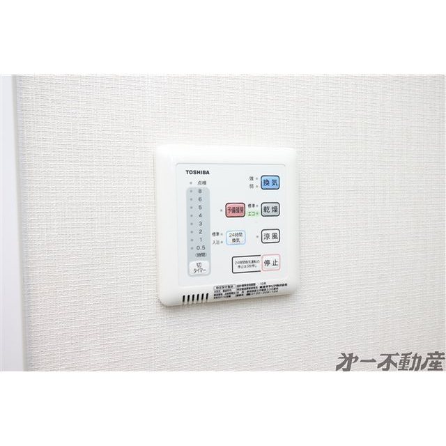 オートロック・エレベータ・宅配BOX・都市ガス・上水道・下水道・電気・防犯カメラ・エアコン・照明器具・モニタ付インターホン・室内洗濯機置場・システムキッチン・洗髪洗面化粧台・バルコニー・B・T別室・トイレ・洗面所独立・浴室乾燥機・火災警報器(報知機)・室内物干し・温水洗浄便座