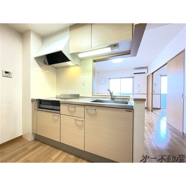 BS端子・オートロック・宅配BOX・電気・都市ガス・上水道・下水道・シャワー・エアコン・照明器具・モニタ付インターホン・室内洗濯機置場・システムキッチン・洗髪洗面化粧台・バルコニー・B・T別室・トイレ・洗面所独立・IHクッキングヒータ・火災警報器(報知機)・温水洗浄便座・シューズボックス・カウンタキッチン