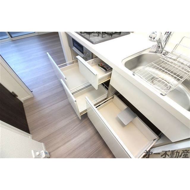 BS端子・オートロック・宅配BOX・電気・プロパンガス・上水道・下水道・シャワー・エアコン・照明器具・モニタ付インターホン・室内洗濯機置場・システムキッチン・洗髪洗面化粧台・バルコニー・追焚機能・ガスコンロ付・B・T別室・トイレ・洗面所独立・浴室乾燥機・火災警報器(報知機)・室内物干し・温水洗浄便座・シューズボックス・カードキー