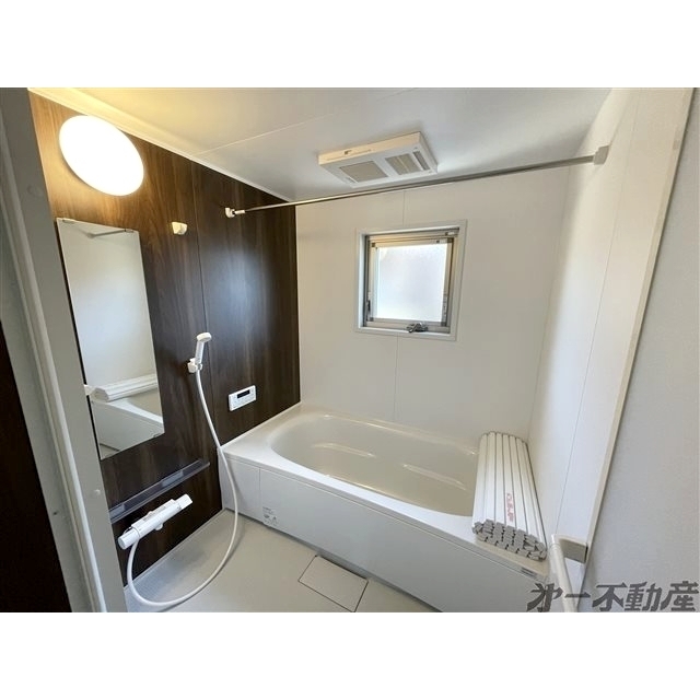 プロパンガス・上水道・下水道・電気・給湯・シャワー・エアコン・モニタ付インターホン・室内洗濯機置場・洗髪洗面化粧台・バルコニー・追焚機能・ガスコンロ付・B・T別室・トイレ・洗面所独立・浴室乾燥機・温水洗浄便座