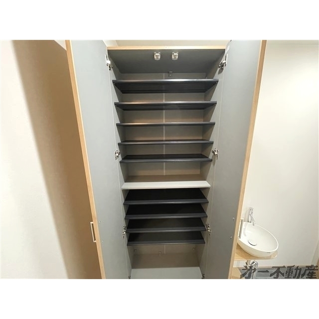 宅配BOX・電気・都市ガス・上水道・下水道・防犯カメラ・給湯・シャワー・エアコン・照明器具・モニタ付インターホン・室内洗濯機置場・システムキッチン・洗髪洗面化粧台・バルコニー・追焚機能・ガスコンロ付・B・T別室・トイレ・洗面所独立・3口以上コンロ・食器洗浄乾燥機・浴室乾燥機・室内物干し・温水洗浄便座・シューズボックス・カウンタキッチン
