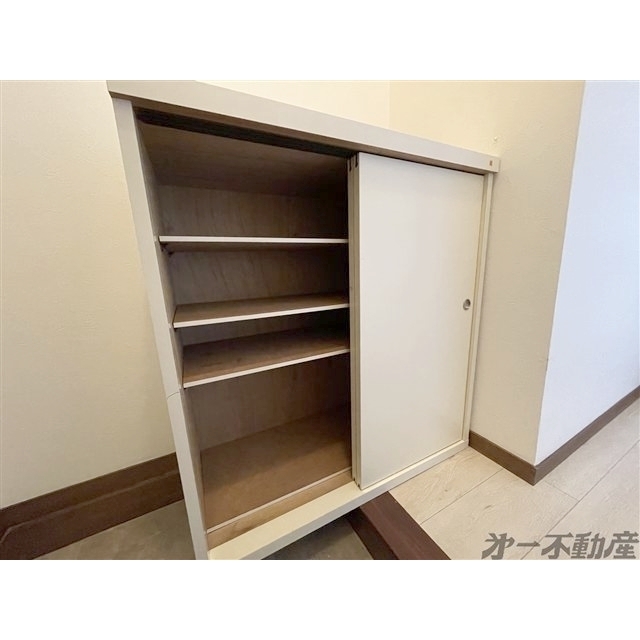 エレベータ・都市ガス・上水道・下水道・電気・給湯・シャワー・エアコン・照明器具・モニタ付インターホン・室内洗濯機置場・バルコニー・ガスコンロ付・B・T別室・トイレ・洗面所独立・シューズボックス