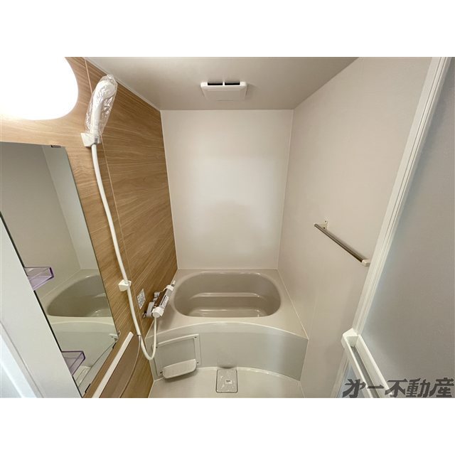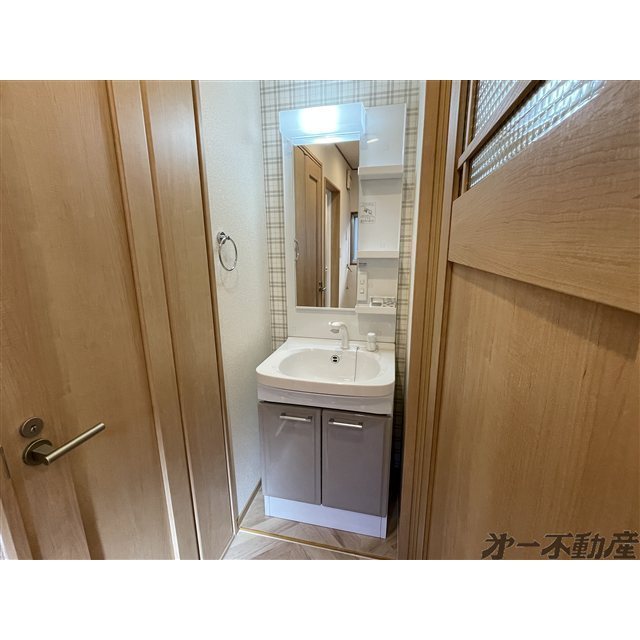 プロパンガス・上水道・浄化槽・電気・シャワー・エアコン・モニタ付インターホン・室内洗濯機置場・フローリング・洗髪洗面化粧台・ガスコンロ可・B・T別室・トイレ・洗面所独立・シューズボックス