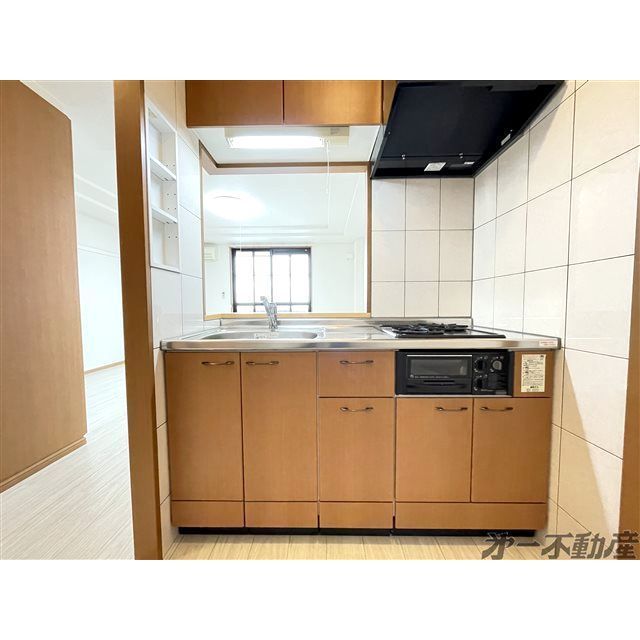 BS端子・オートロック・エレベータ・都市ガス・上水道・下水道・電気・シャワー・エアコン・照明器具・モニタ付インターホン・室内洗濯機置場・システムキッチン・洗髪洗面化粧台・バルコニー・ガスコンロ付・B・T別室・トイレ・洗面所独立・浴室乾燥機・温水洗浄便座・シューズボックス・カウンタキッチン