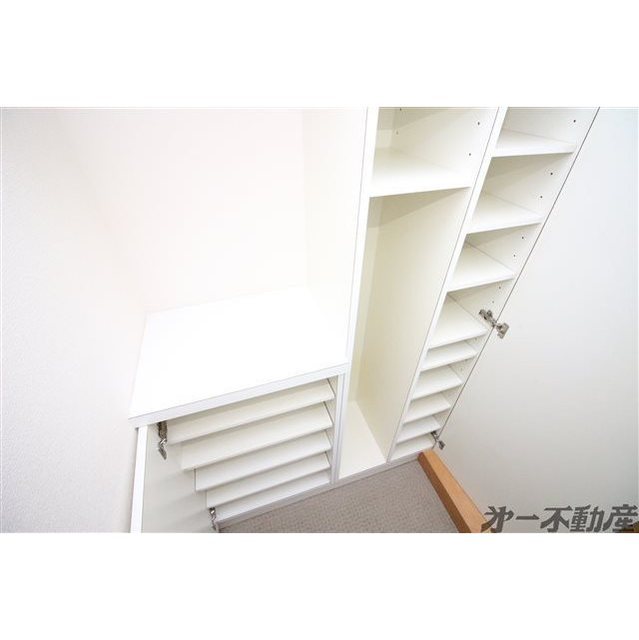 CATV・オートロック・エレベータ・都市ガス・上水道・下水道・電気・光ファイバー・給湯・シャワー・エアコン・照明器具・モニタ付インターホン・室内洗濯機置場・フローリング・トランクルーム・洗髪洗面化粧台・バルコニー・B・T別室・トイレ・洗面所独立・IHクッキングヒータ・室内物干し・シューズボックス
