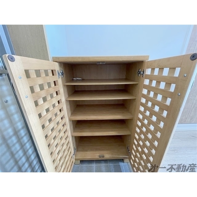 エレベータ・宅配BOX・都市ガス・上水道・下水道・電気・光ファイバー・給湯・シャワー・エアコン・照明器具・モニタ付インターホン・室内洗濯機置場・バルコニー・ガスコンロ付・B・T別室・トイレ・洗面所独立・シューズボックス
